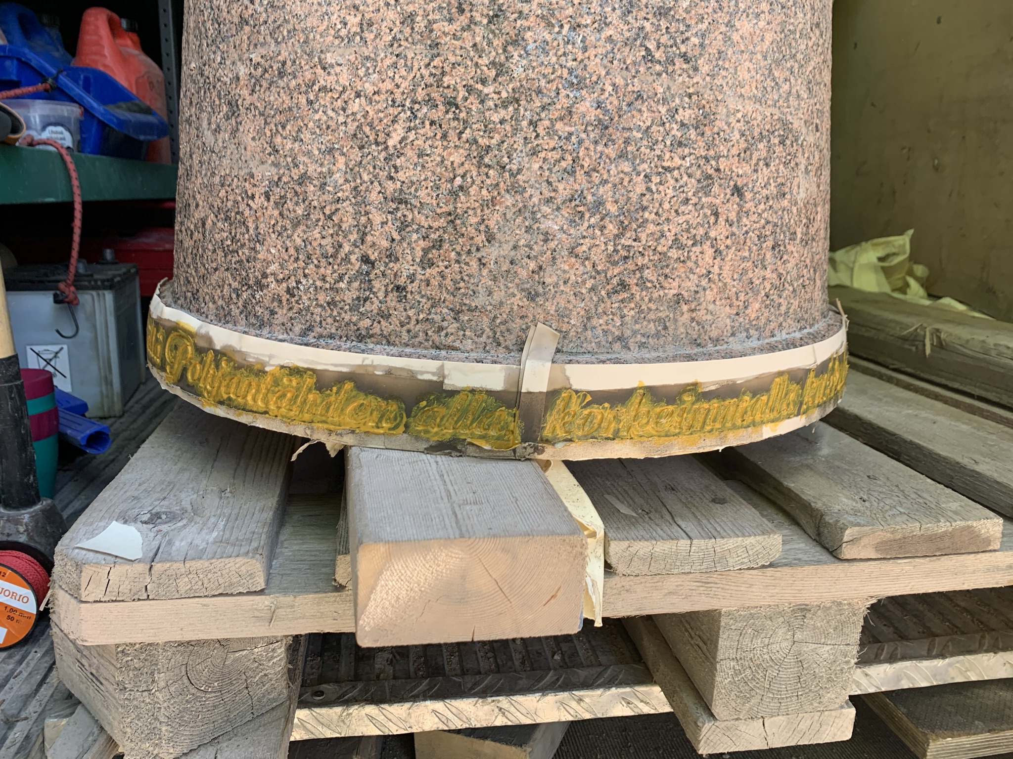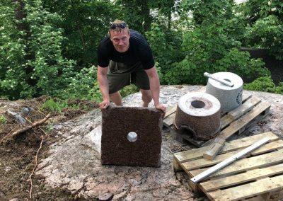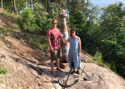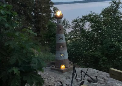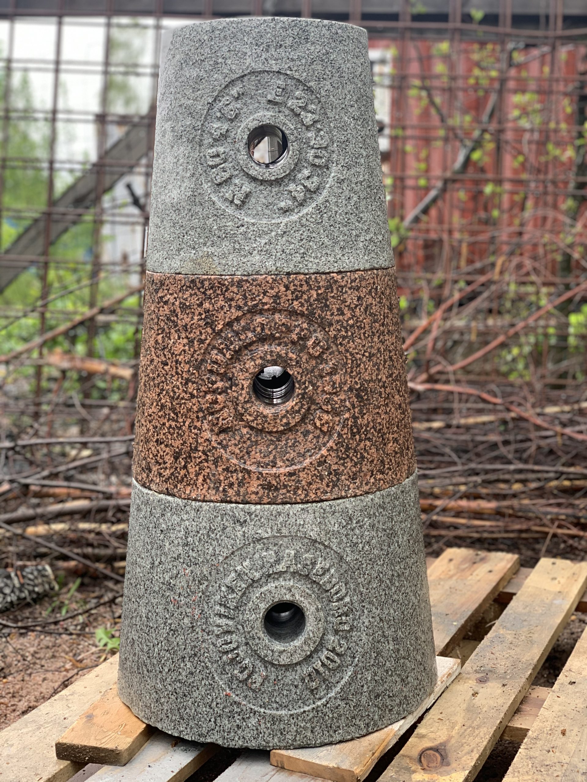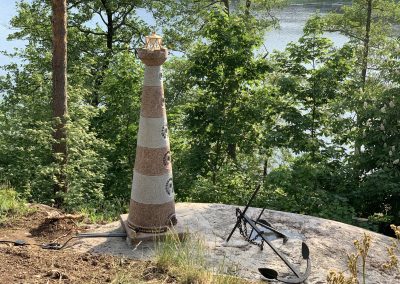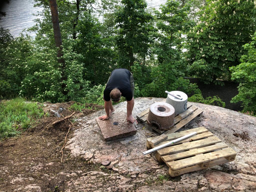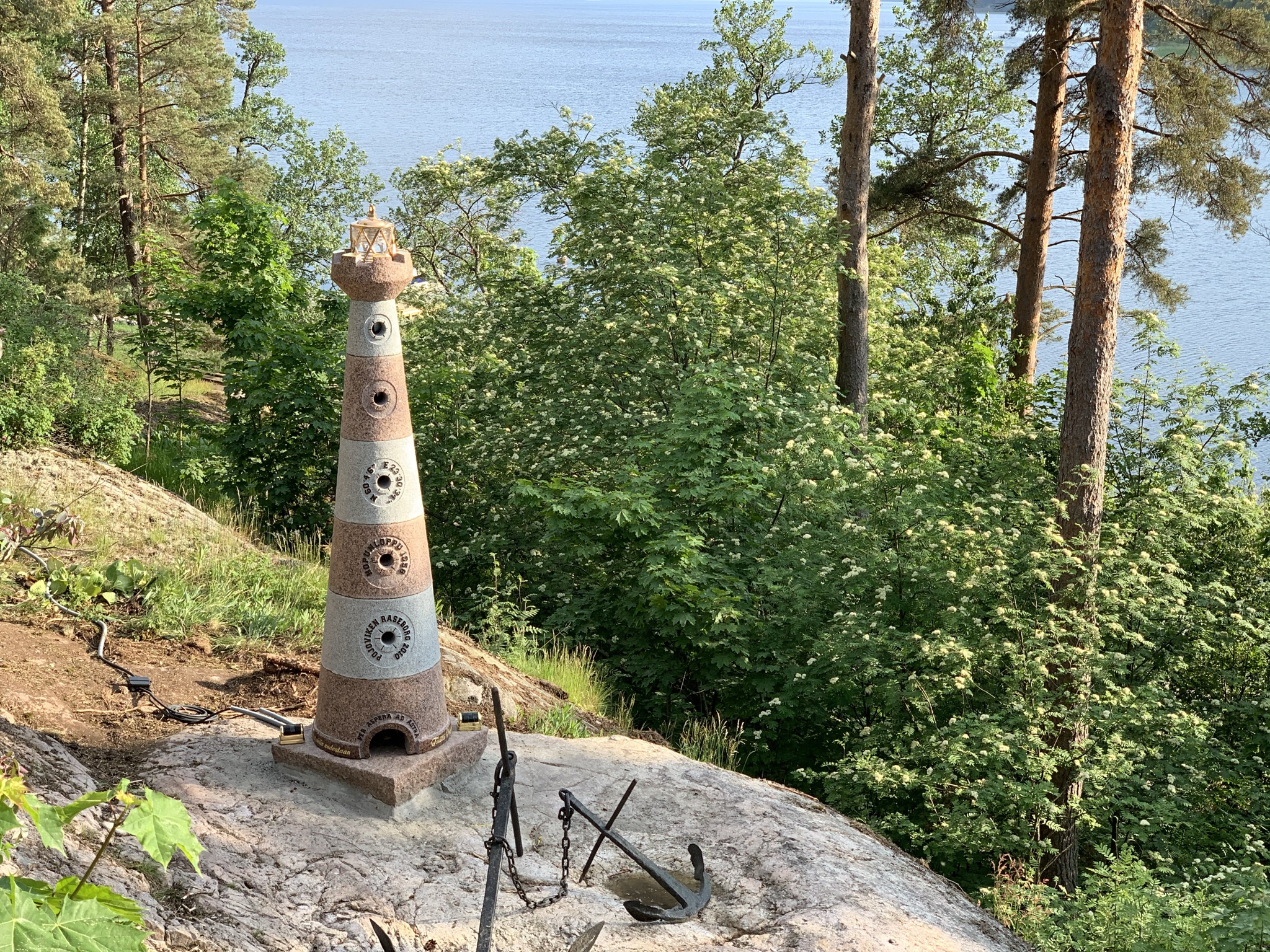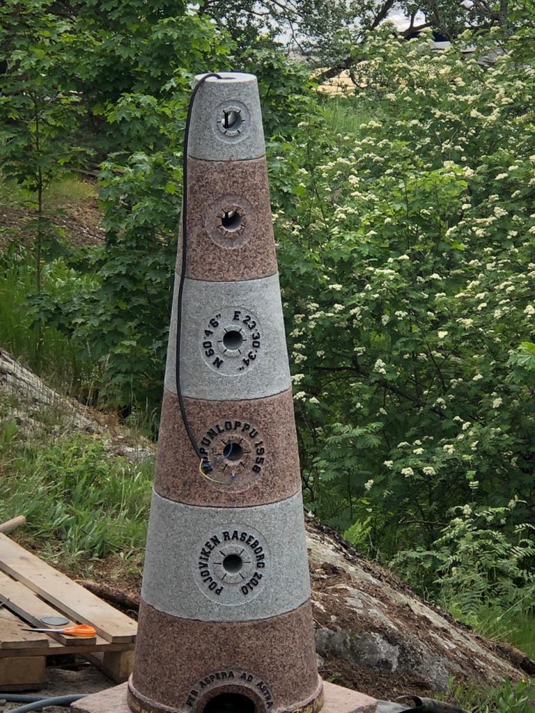 Tekisimme kotimaisesta punaisesta ja harmaasta graniitista majakan, johon tulisi koordinaatteja, ilmansuunnat ja merkityksellisiä tekstejä heitä yhdistävästä paikasta ja myöskin kuvastamaan heidän yhteistä matkaansa.