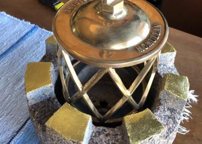 Työn oli tarkoituskin olla yllätys, joka muuttuikin matkalla muistoksi/ linkiksi taivaan ja maan välillä, sillä rakas merimies sairastui ja menehtyi ennen teoksen julkistusta. Teokseen lisättiin kaunis “täällä pohjantähden alla” teksti lehtikullalla kullattuna tuomaan merkityksellisyyttä ja tunnetta menetyksestä.